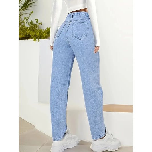 Jeans De Pierna Recta Destruidos Con Corte Rasgado En La Rodilla