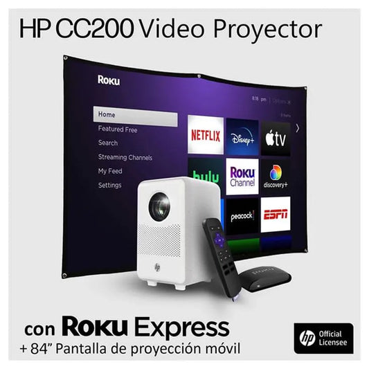 Proyector HP CC200 LCD FHD 200 LED Lms Bocinas 80" FHD + Roku Express
